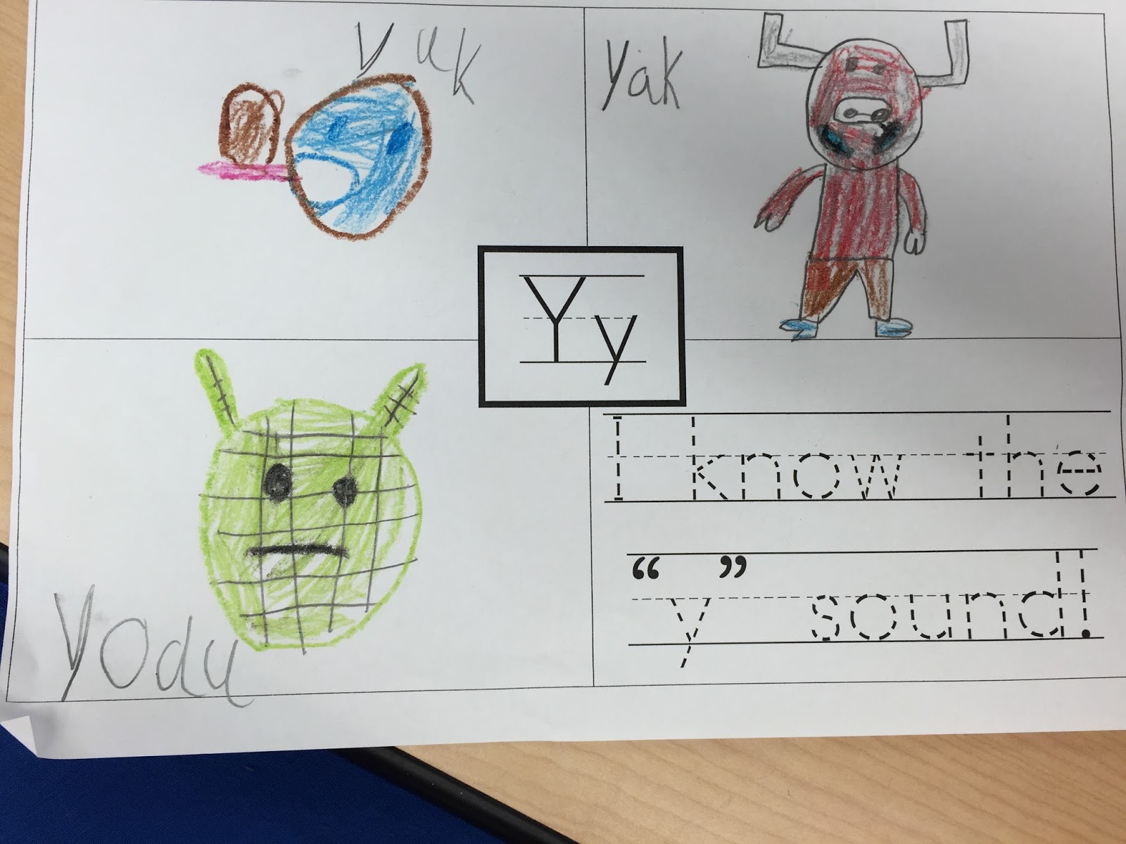 The boys and girls also drew pictures to show words that begin with the letter Yy!